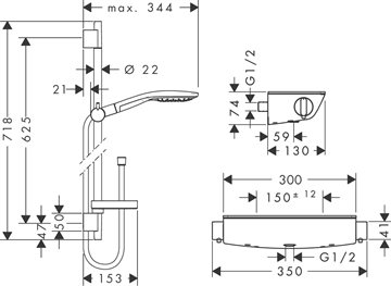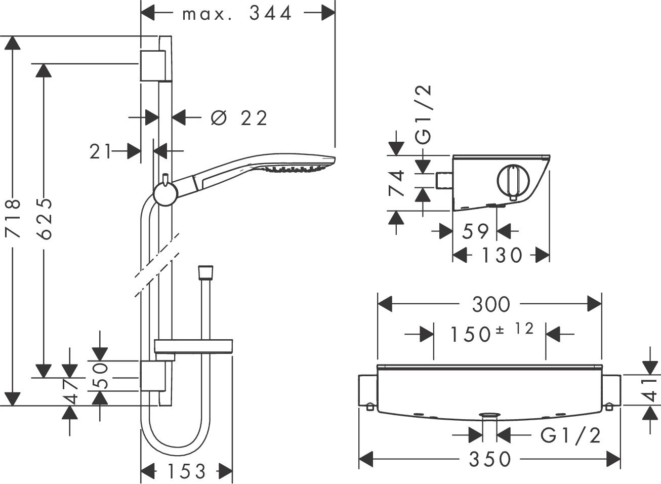 hansgrohe Raindance Select S Brusersystem til frembygning 150 med Ecostat Select termostat og bruserstang
