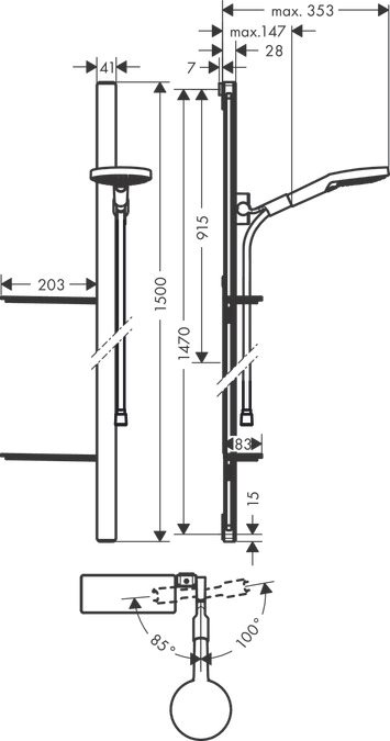 Raindance Select S serien fra tyske hansgrohe er kendetegnet ved dens kvalitet, elegance, runde og tilgængelige design. Raindance Select S håndbruseren har en integreret omskifter. Det kræver blot et tryk på Select knappen, som smukt er integreret i håndbruserens greb for skifte mellem de forskellige stråletyper. Håndbruserne har gummi dupper på dyserne så kalkaflejringer let og enkelt kan fjernes. Glideren/håndbruserholderen er højdeindstillelig. Brusersættet fastgøres i væggen med skruer
