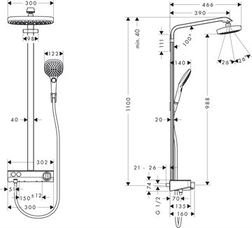 hansgrohe Raindance ShowerTablet Select E Showerpipe 300 2jet - Hvid/krom