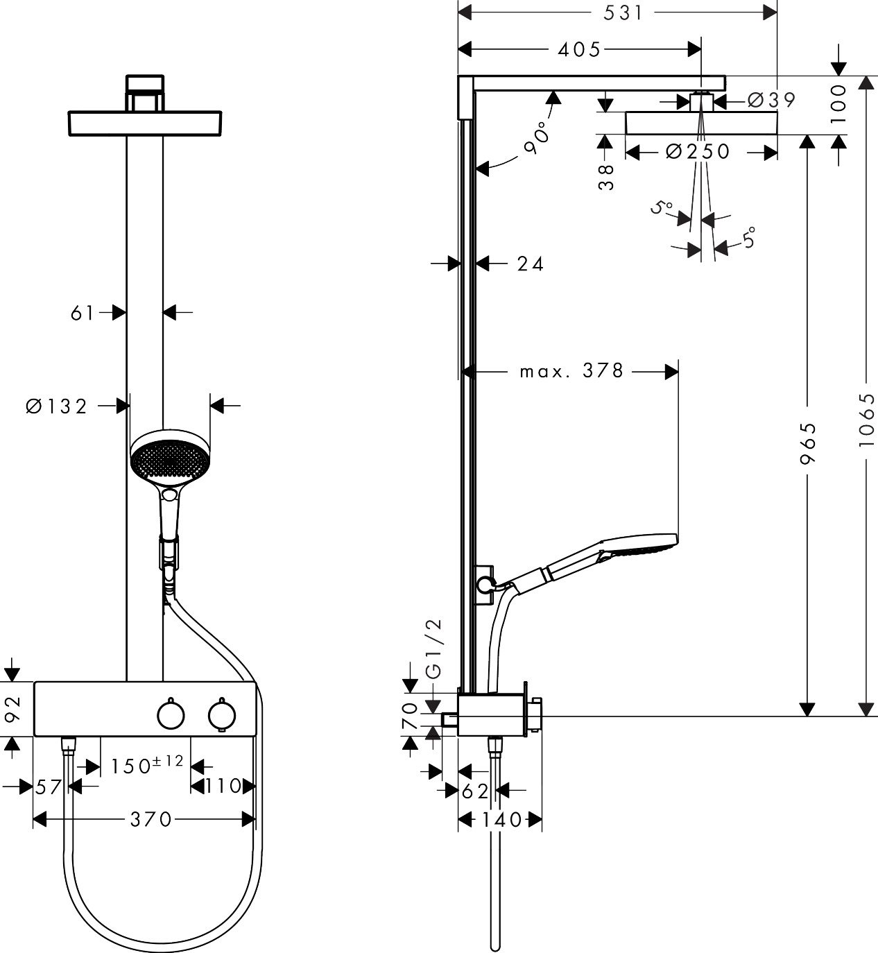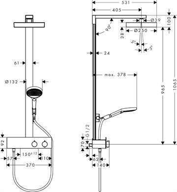 Hansgrohe Rainfinity Showerpipe 250 1jet EcoSmart med ShowerTablet 350 i krom