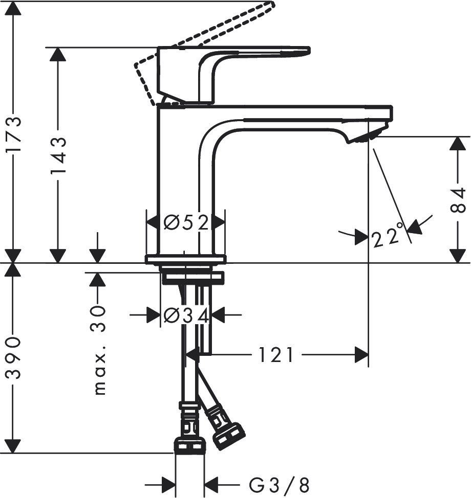 Håndvaskarmaturet er med fleksible tilslutningsslanger med 3/8" omløbere, der gør monteringen smidig.