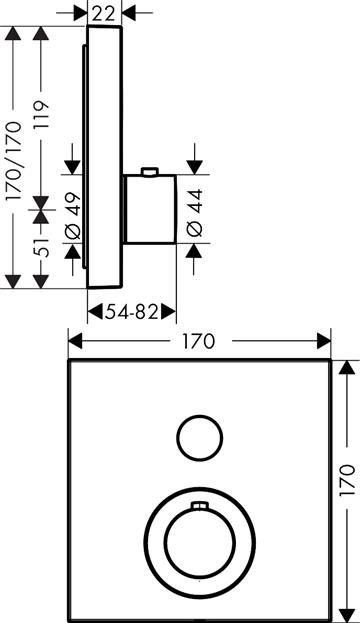 hansgrohe ShowerSelect termostatarmatur med afspærring til 1 udtag. 170x170mm