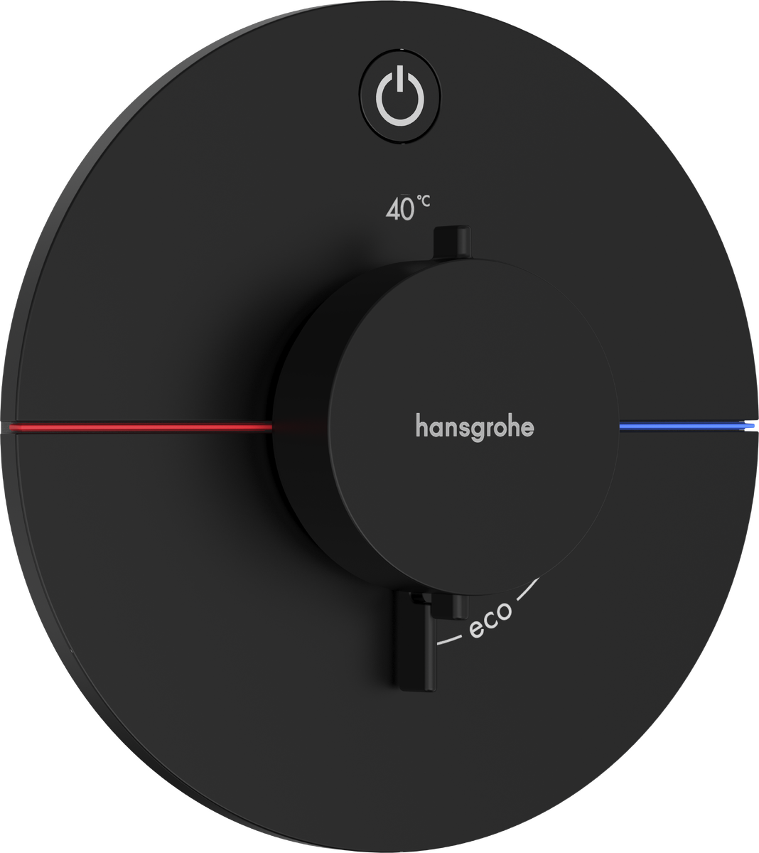 Hansgrohe ShowerSelect termostatarmaturet er lavet med respekt for vandet som ressource og frem for alt med fokus på brugeren. Derfor har termostatbatteriet en sikkerhedsspærren ved 40°C. Denne sikrer, at vandet ikke er skoldhedt, når det tændes. Sikkerhedsspærre-knappen kan deaktiveres hvis der er behov for individuel temperatur.