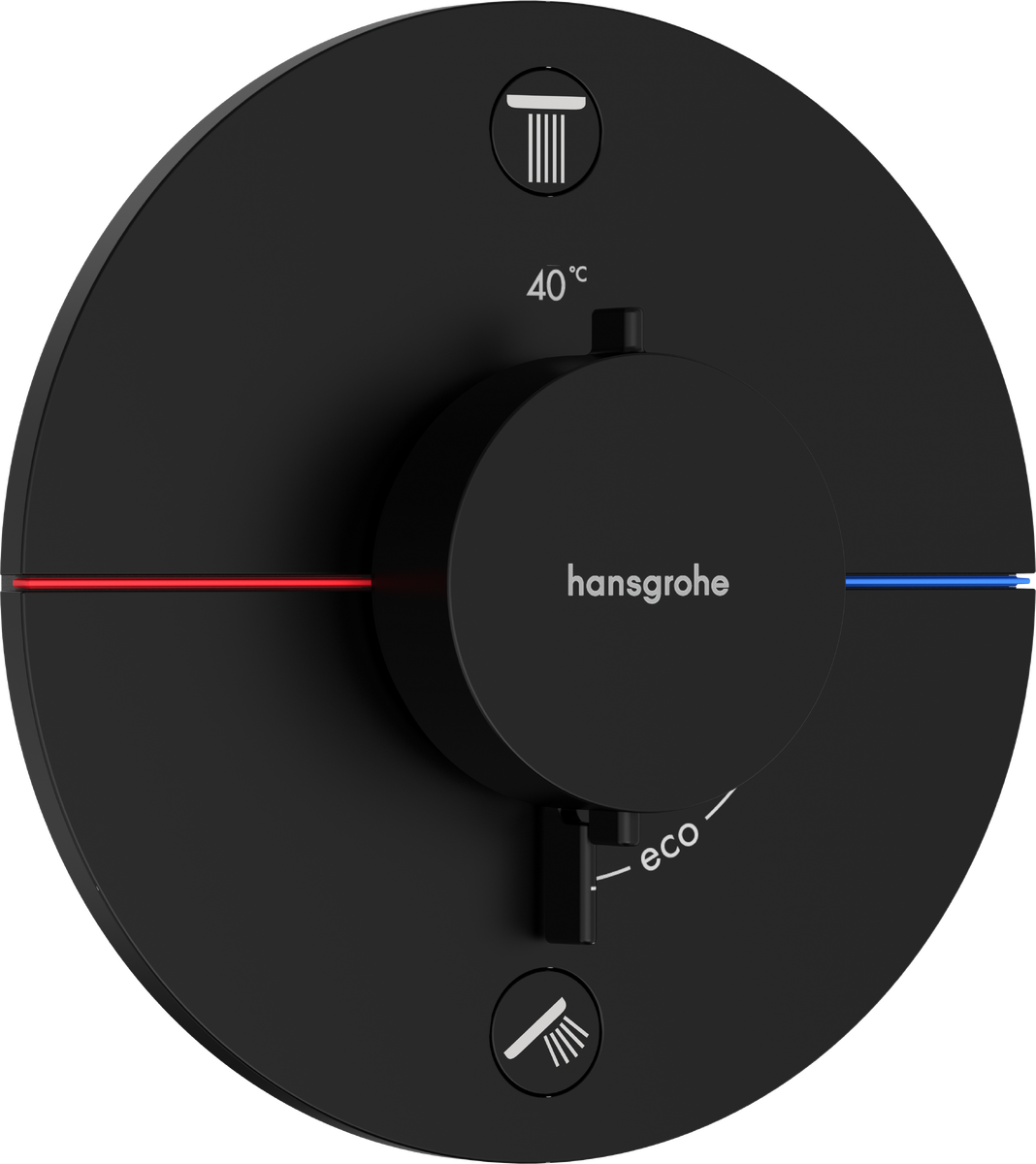 Hansgrohe ShowerSelect termostatarmaturet er lavet med respekt for vandet som ressource og frem for alt med fokus på brugeren. Derfor har termostatbatteriet en sikkerhedsspærren ved 40 °C. Denne sikrer, at vandet ikke er skoldhedt, når det tændes. Sikkerhedsspærre-knappen kan deaktiveres hvis der er behov for individuel temperatur.