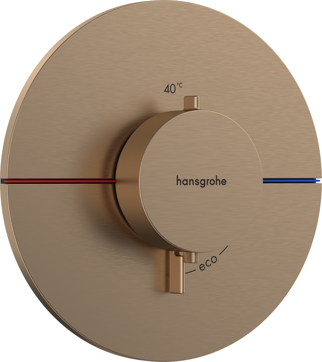 Hansgrohe ShowerSelect termostatarmaturet er lavet med respekt for vandet som ressource og frem for alt med fokus på brugeren. Derfor har termostatbatteriet en sikkerhedsspærren ved 40 °C. Denne sikrer, at vandet ikke er skoldhedt, når det tændes. Sikkerhedsspærre-knappen kan deaktiveres hvis der er behov for individuel temperatur.