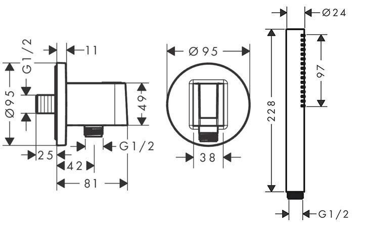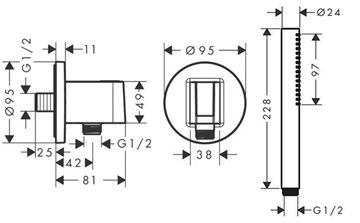 • 1 x hansgrohe FixFit S slangeudtag inkl. bruseholder - krom – 738866804