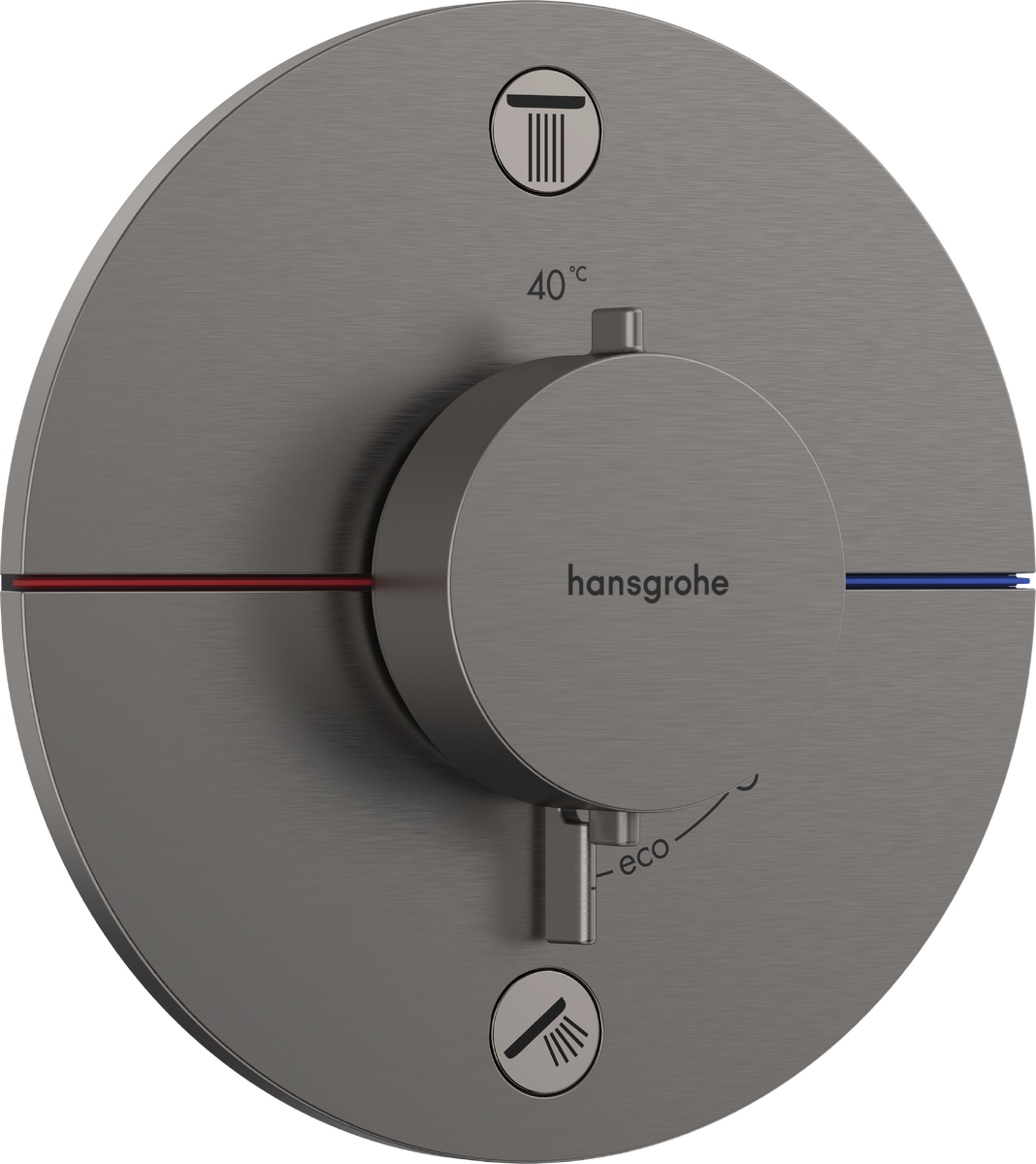 Hansgrohe ShowerSelect termostatarmaturet er lavet med respekt for vandet som ressource og frem for alt med fokus på brugeren. Derfor har termostatbatteriet en sikkerhedsspærren ved 40 °C. Denne sikrer, at vandet ikke er skoldhedt, når det tændes. Sikkerhedsspærre-knappen kan deaktiveres hvis der er behov for individuel temperatur.