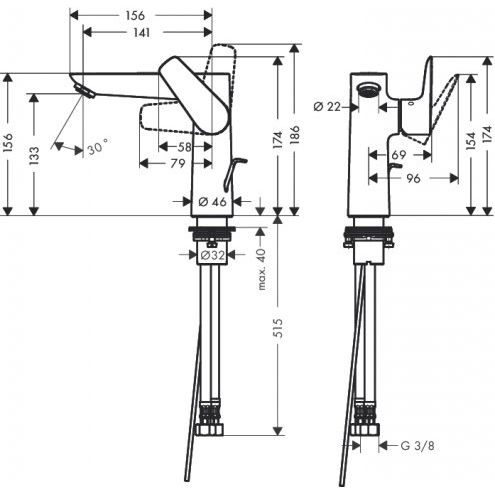 Hansgrohe Talis E 1-grebs håndvaskarmatur 150, M. bundventil, Krom
