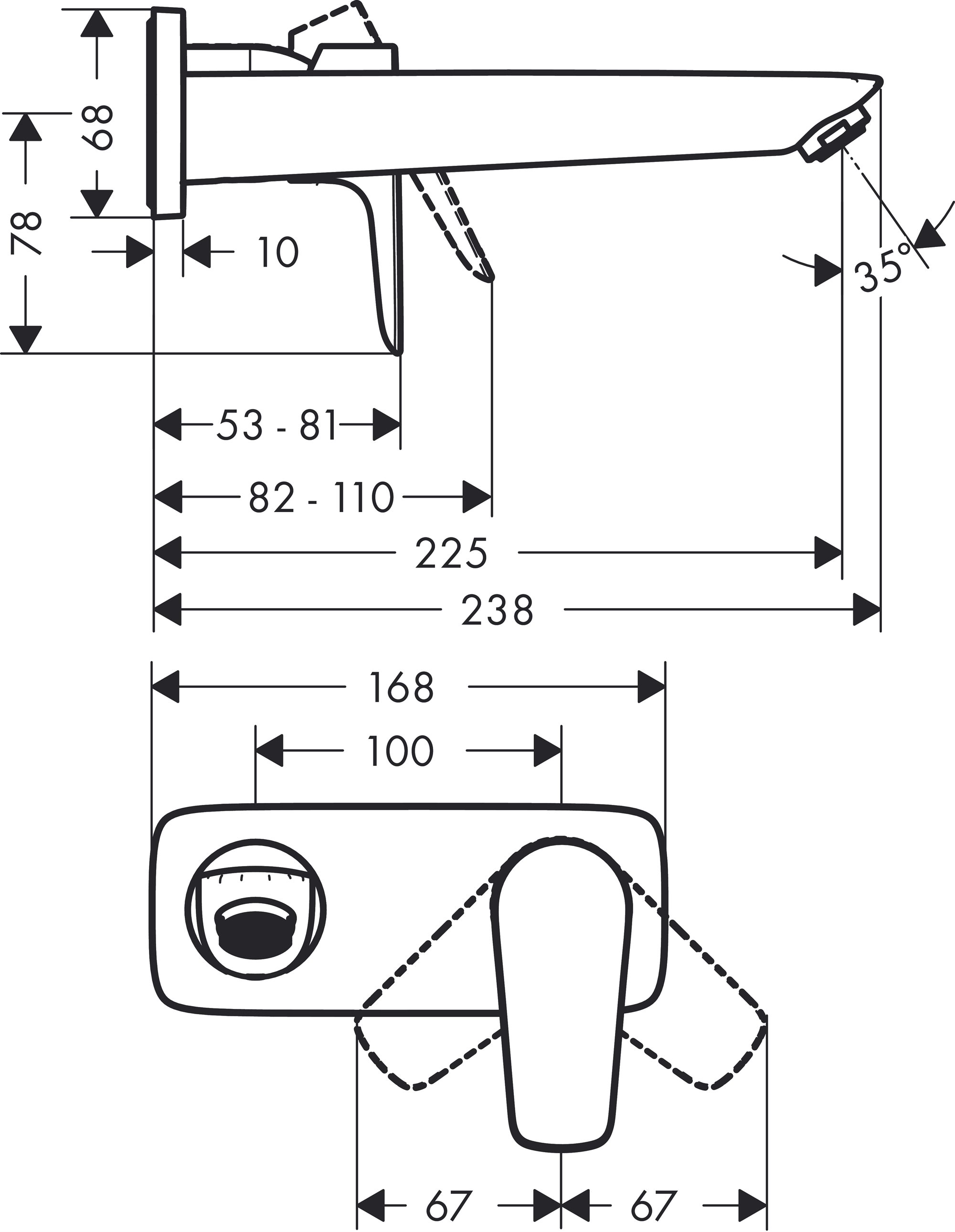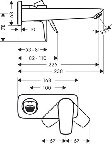 • består af: 1-grebs håndvaskarmatur til indbygning i væg, bundventil