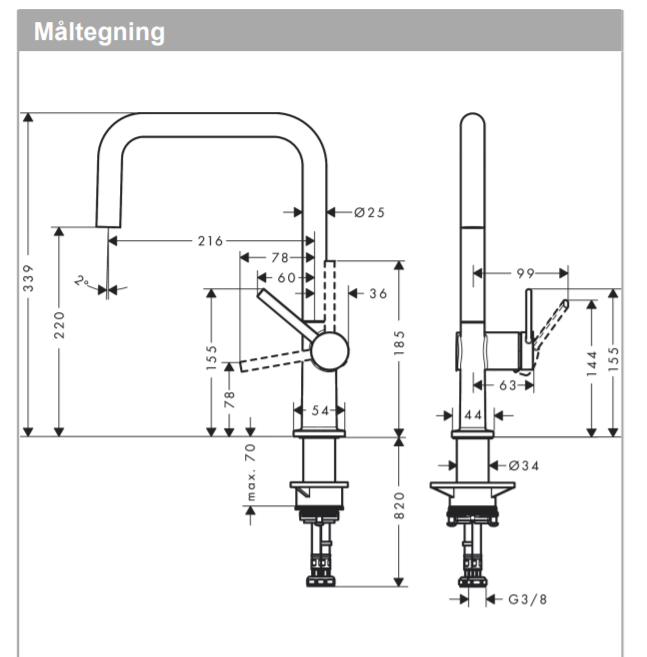 Talis M54 køkkenvandhane data: