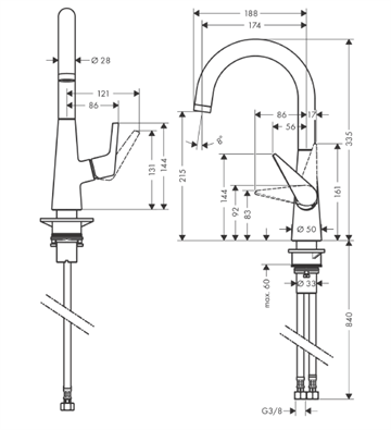 ComfortZone fortæller noget om den frihøjde er der mellem vandhanens udløb og håndvasken. Dette er ikke uvæsentligt set i forhold til om ens vask dyb eller lav.