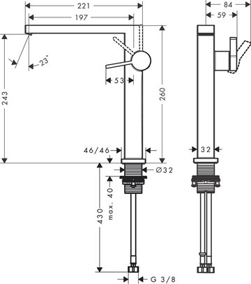 • tudhøjde: 243 mm