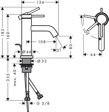 Håndvaskarmaturet er med fleksible tilslutningsslanger med 3/8" omløbere, der gør monteringen smidig,