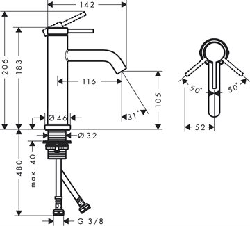 består af: 1-grebs håndvaskarmatur, uden bundventil - løs push-open ventil kan købes særskilt