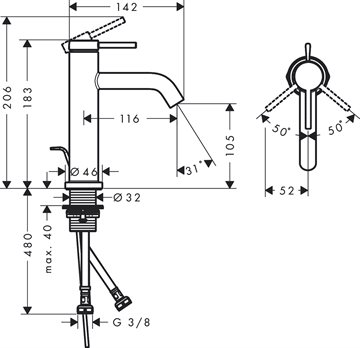 Håndvaskarmaturet er med fleksible tilslutningsslanger med 3/8" omløbere, der gør monteringen smidig,