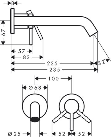 hansgrohe Tecturis S håndvaskarmatur til indbygning i væg m/225 mm tud i børstet bronze