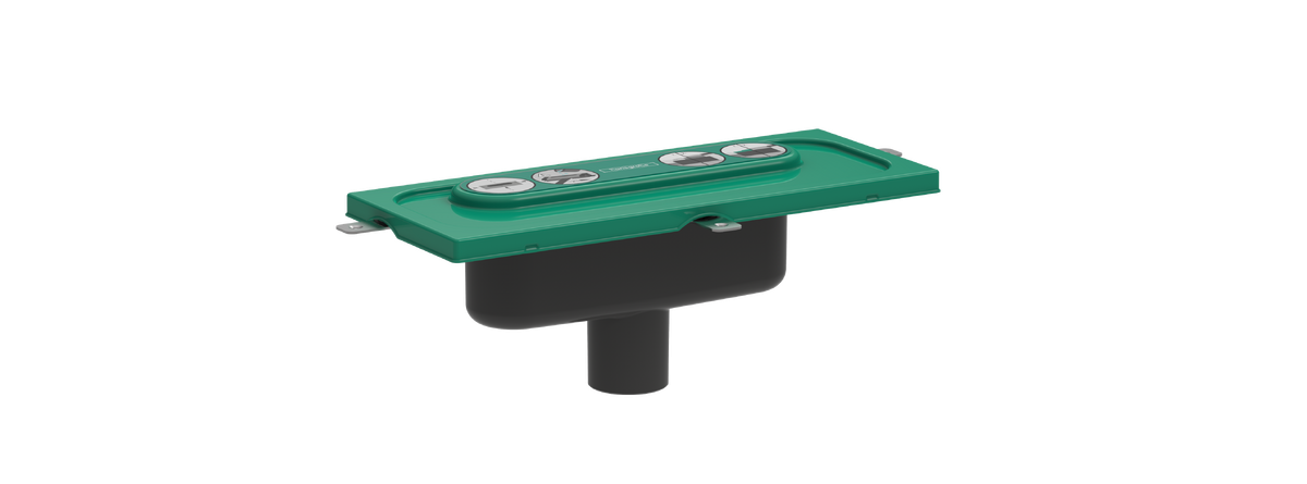 • består af: indbygningsdel, vandlås, formonteret tætningsmembran, afdækning til beskyttelse af afretningslag