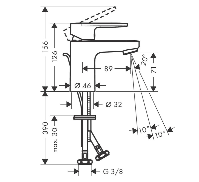 Håndvaskarmaturet er med fleksible tilslutningsslanger med 3/8" omløbere, der gør monteringen smidig.
