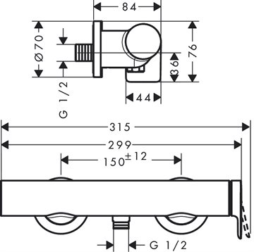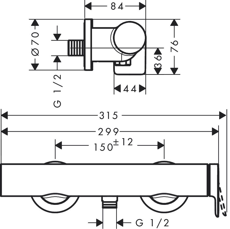 Hansgrohe Vivenis kar-/brusearmatur uden termostat og til montering på væggen i krom