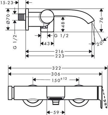 •  centerafstand: 150 mm ± 12 mm