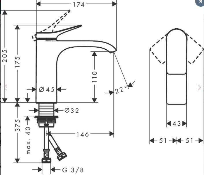 Håndvaskarmaturet er med fleksible tilslutningsslanger med 3/8" omløbere, der gør monteringen smidig,