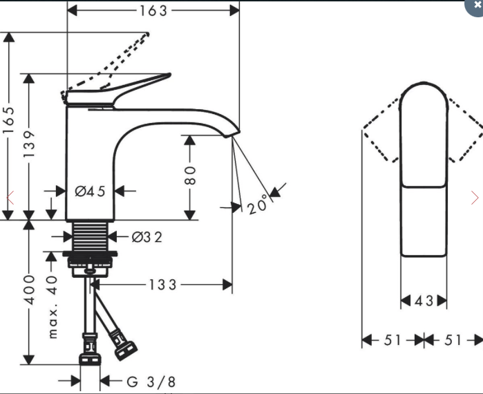 Håndvaskarmaturet er med fleksible tilslutningsslanger med 3/8" omløbere, der gør monteringen smidig.