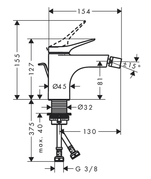 Hansgrohe Vivenis bidetarmatur m/lov mat sort