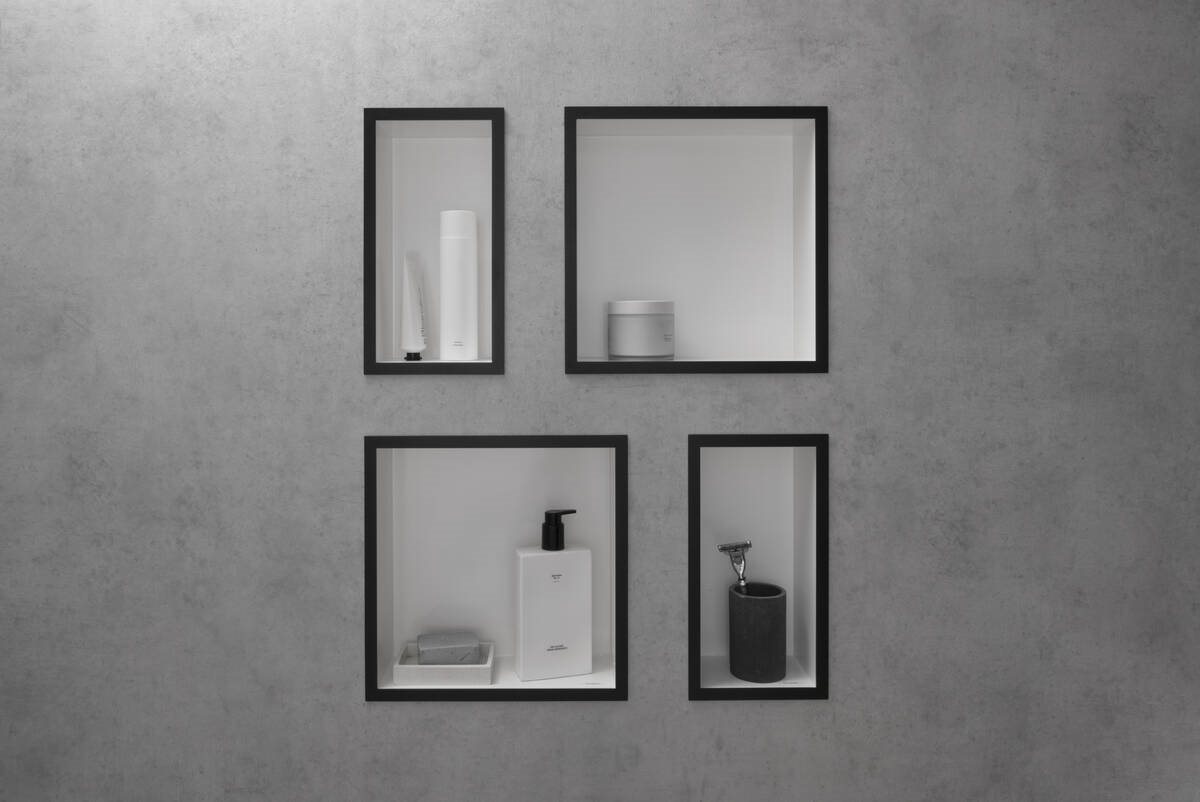 • består af: vægniche med designramme, monteringssæt, tætningssæt