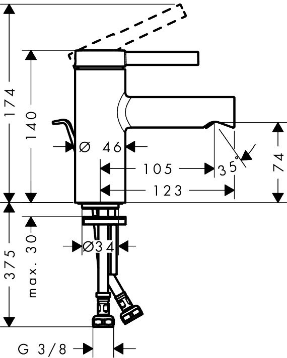 Håndvaskarmaturet er med fleksible tilslutningsslanger med 3/8" omløbere, der gør monteringen smidig.