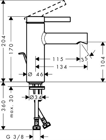 • består af: 1-grebs håndvaskarmatur, bundventil