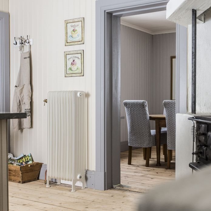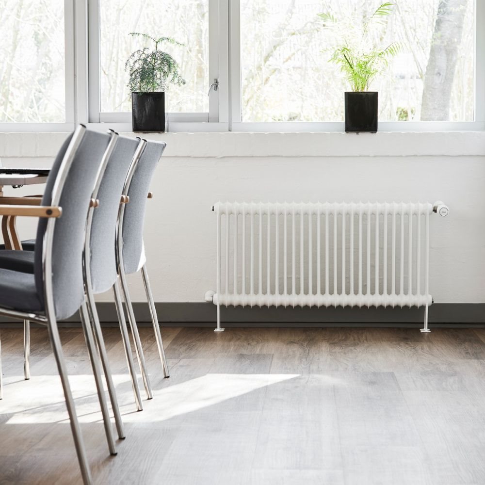 Hudevad Classic radiatoren kan monteres på væg- eller gulv ved tilvalg af ben. Standard vægbæringer er inkluderet
