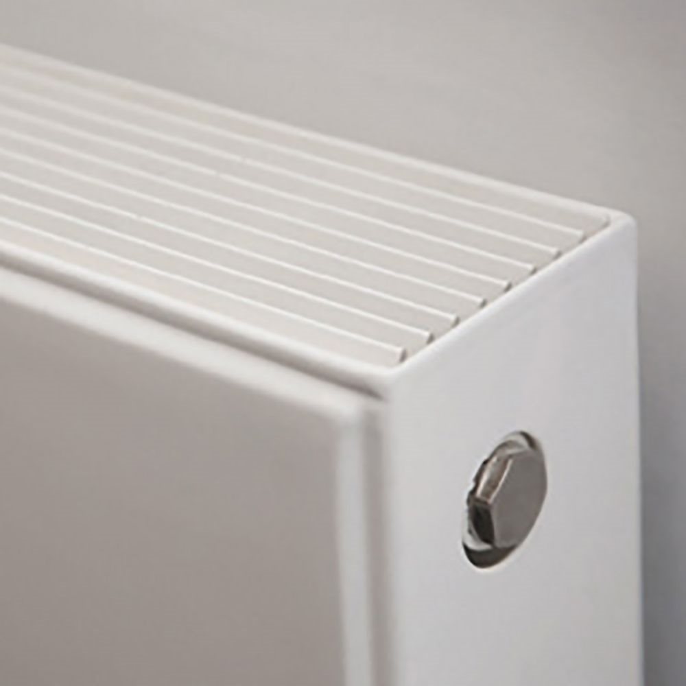 Hudevad Fionia radiatoren har en glat front, stilen er minimalistisk og her er, takket været de lukkede gavle og den integreret toprist, ingen synlig rørføring. På bagsiden af radiatoren er der lodrette vandkanaler i presset stål, og vandet cirkulerer bagved frontpladen på hver plade og mellem pladerne via indbyrdes forbindelser. Dens diskrete og smukke ydre gør den til et oplagt valg, da den passer til de fleste indretninger. Radiatoren leveres som standard med 4 anboringer i ½" ABCD to i hver side. Herpå monteres ventilen, prop, luftskrue, bøjning og forskruning. Såfremt der ønskes anderledes anboringer eller integreret ventil, bedes du kontakte os