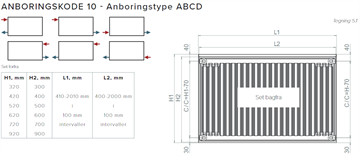 Hudevad Fionia radiatoren har en glat front, stilen er minimalistisk og her er, takket været de lukkede gavle og den integreret toprist, ingen synlig rørføring. På bagsiden af radiatoren er der lodrette vandkanaler i presset stål, og vandet cirkulerer bagved frontpladen på hver plade og mellem pladerne via indbyrdes forbindelser. Dens diskrete og smukke ydre gør den til et oplagt valg, da den passer til de fleste indretninger. Radiatoren leveres som standard med 4 anboringer i ½" ABCD to i hver side. Herpå monteres ventilen, prop, luftskrue, bøjning og forskruning. Såfremt der ønskes anderledes anboringer eller integreret ventil, bedes du kontakte os.