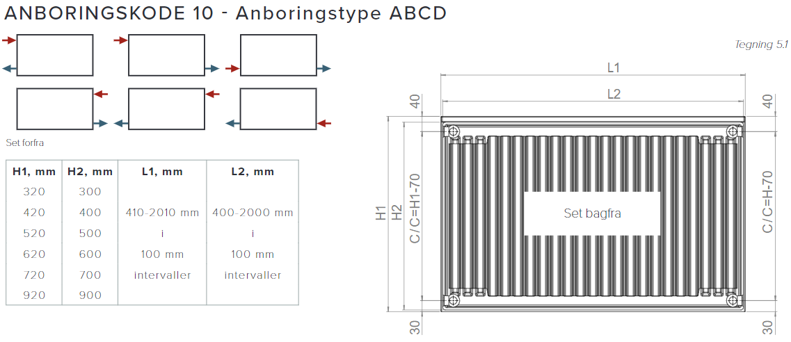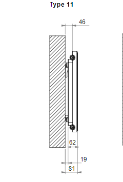 Hudevad P5 Horisontal type 11 (dybde 62 mm) Højde 620 mm - fås i flere længder