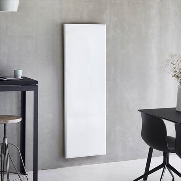 Hudevad P5 er en minimalistiske og meget elegant vertikal radiator. Den har en glat og plan front med en detaljerille ved kanten, designet er stilrent og diskret. Radiatoren har udover den glatte frontplade, delvist lukkede gavle og leveres som standard med diskrete nedadvendte anboringer. Det slanke og elegante design gør den til et oplagt valg til steder hvor pladsen er begrænset det kan være på badeværelset, i entreen eller i køkkenet. Såfremt der ønskes integreret ventil, bedes du kontakte os.