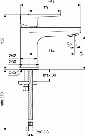 Ideal Standard Cerafine O Håndvaskarmatur uden bundventil i krom