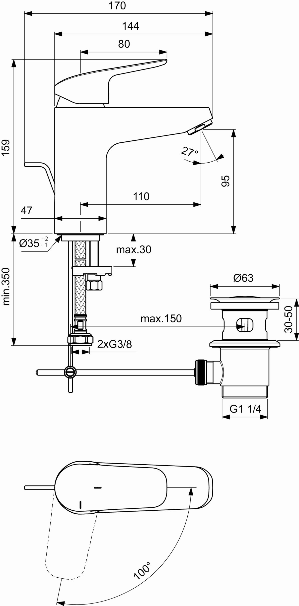 Ideal Standard Ceraflex Bluestart Håndvaskarmatur med træk-op bundventil