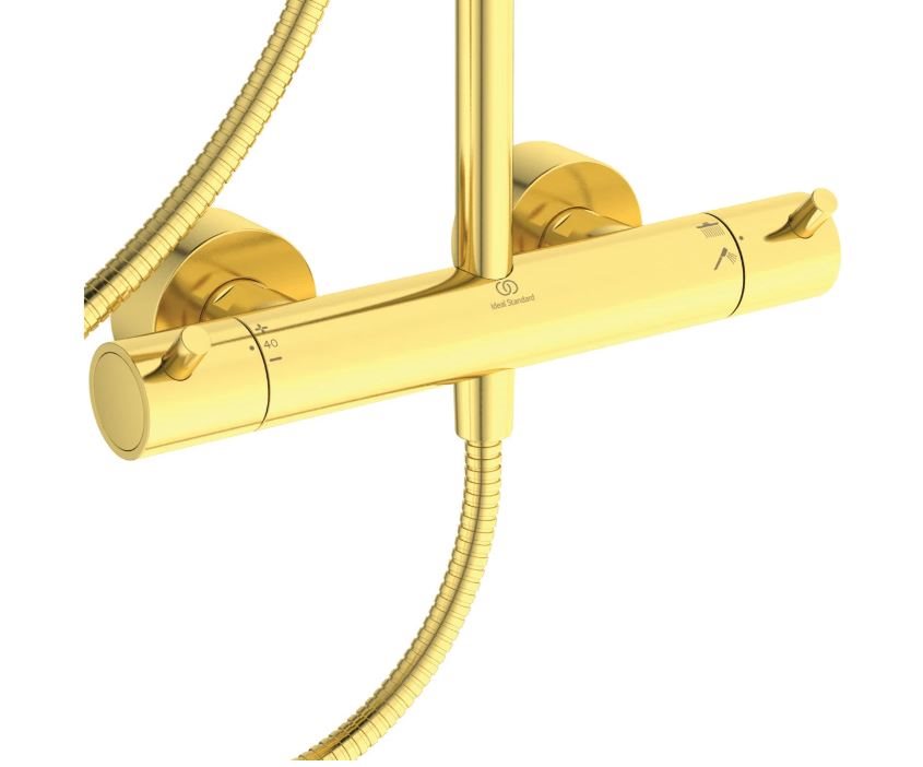Ideal Standard Ceratherm T125 brusesystem m/termostatarmatur, hoved- & håndbruser, Brushed Gold (børstet messing)