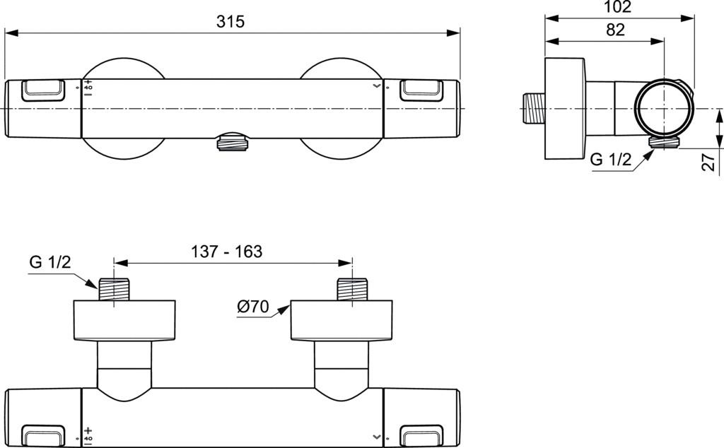 Ideal Standard Ceratherm T25 Brusetermostat i mat sort