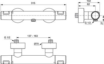 Ideal Standard Ceratherm T25 brusetermostat, silk black (matsort), keramisk ventiloverdel, skoldningsspærrer, vandsparefunktion, Coolbody , inkl. forskruninger og rosetter, tilgange: G3/4” omløbere, kontraventiler i tilgange, afg. til brus: G1/2.