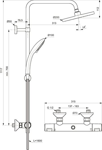 Ideal Standard Idealrain T25 Brusesystem, Ø200mm hovedbruser, Silk Black