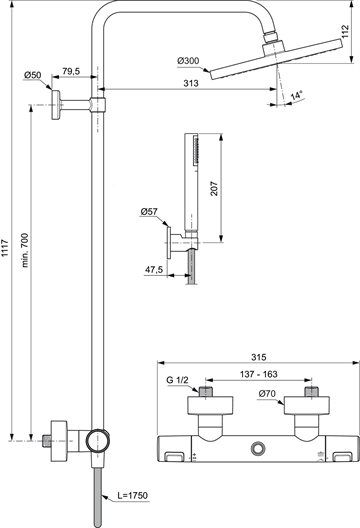 Ideal Standard Idealrain T25 komplet Brusesystem Ø300mm i Matsort