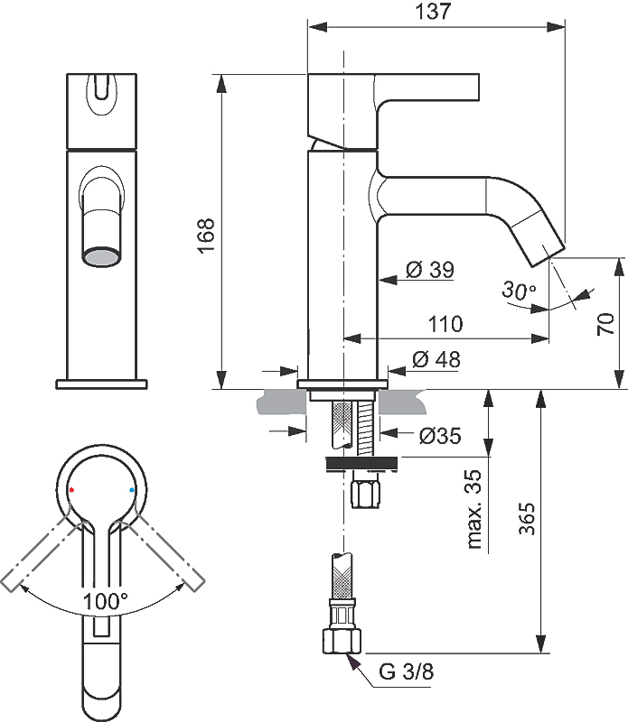 JOY | Servantehane 48x143.5x168 mm, 110 mm tudfremspring i krom, 5 l/min (3 bar), Uden bundventil | EasyFix, Skjult luftblander, EPD, FirmaFlow, SmartShine