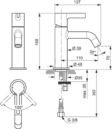 Ideal Standard JOY håndvaskarmatur 110mm tud og uden bundventil, Krom