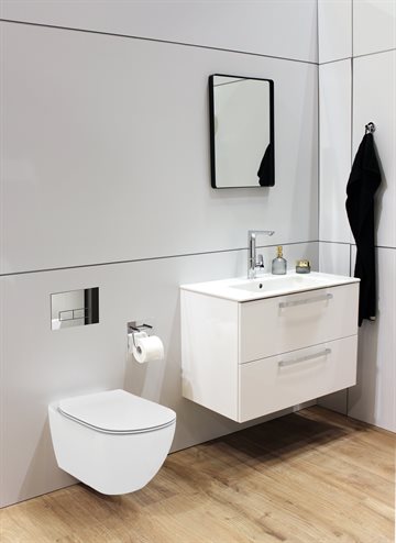 Hængeskålen har desuden skjult montering samt et toiletsæde med softclose, så det let kan afmonteres i forbindelse med rengøring.