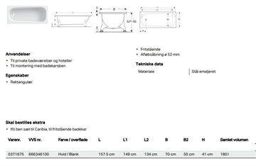 Ifö badekar fås i emaljeret stålplade. Ifö Badekar i emaljeret stål er klassiske i designet og af et meget stærkt og holdbart materiale.