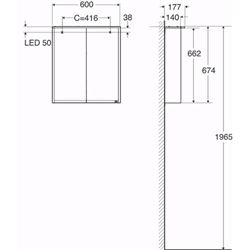 Spejlskab i lakeret hvid melamin med 2 flytbare glashylder. LED-belysning og justerbare monteringsbeslag medleveres. Skjult vendbart el-udtag findes i skabet, 230 V. Dobbeltsidige spejllåger med softclose beslag. Den nederste del af spejllågen er frostet, med et diskret Ifö logo. Lågegreb indgår, men kan udelades, da spejllågerne enkelt kan åbnes og lukkes ved at anvende den frostede del af lågen som greb. Dimensioner H: 674 B: 600 D: 177 mm.