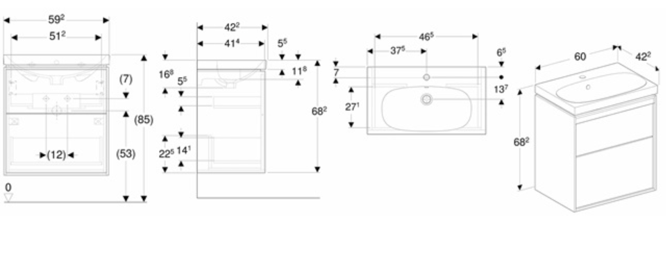 Ifø Sense Art kompakt møbelsæt 60 cm med 2 skuffer - dybde 42,2 cm