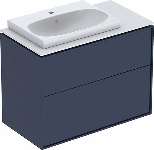 Ifø Sense Art møbelsæt slim 90 cm med 2 skuffer - vask placeret oven på bordplade i venstre side, midnatsblå / akryl dybmat