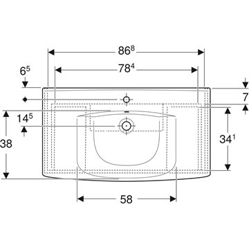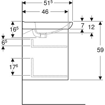 • Håndvasken har god afstillingsplads og forhøjet bagkant
